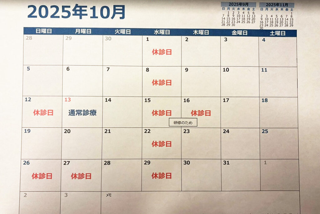 2024年9月の診療予定 蒸し暑い日が続くと自律神経のバランスを崩し、倦怠感や神経痛など様々な不調が出て来ます