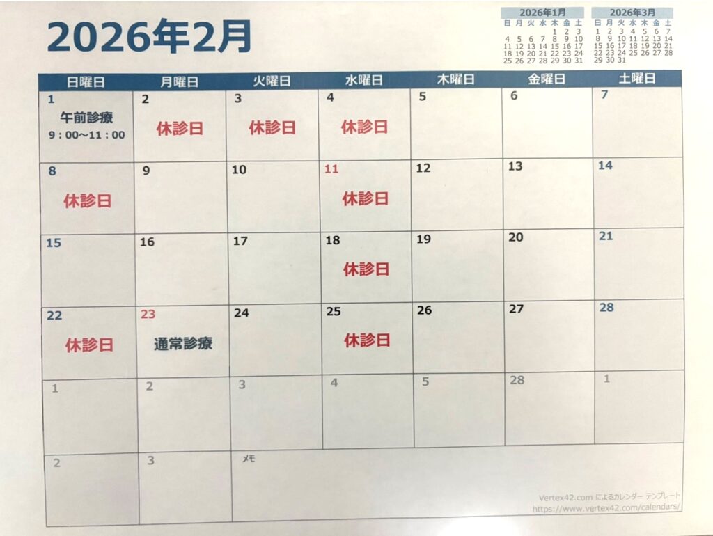 2月2日(日)から5日までは院長私用のため、お休みとなります🙇♀þ